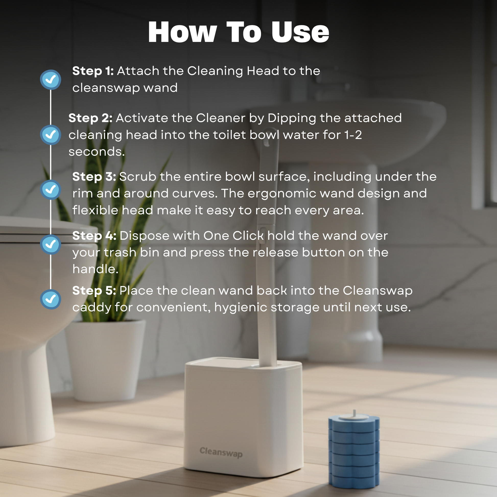 Revolutionary disposable system eliminates gross brushes forever. Wall-mounted elegance meets ultimate hygiene for a cleaner, healthier bathroom.